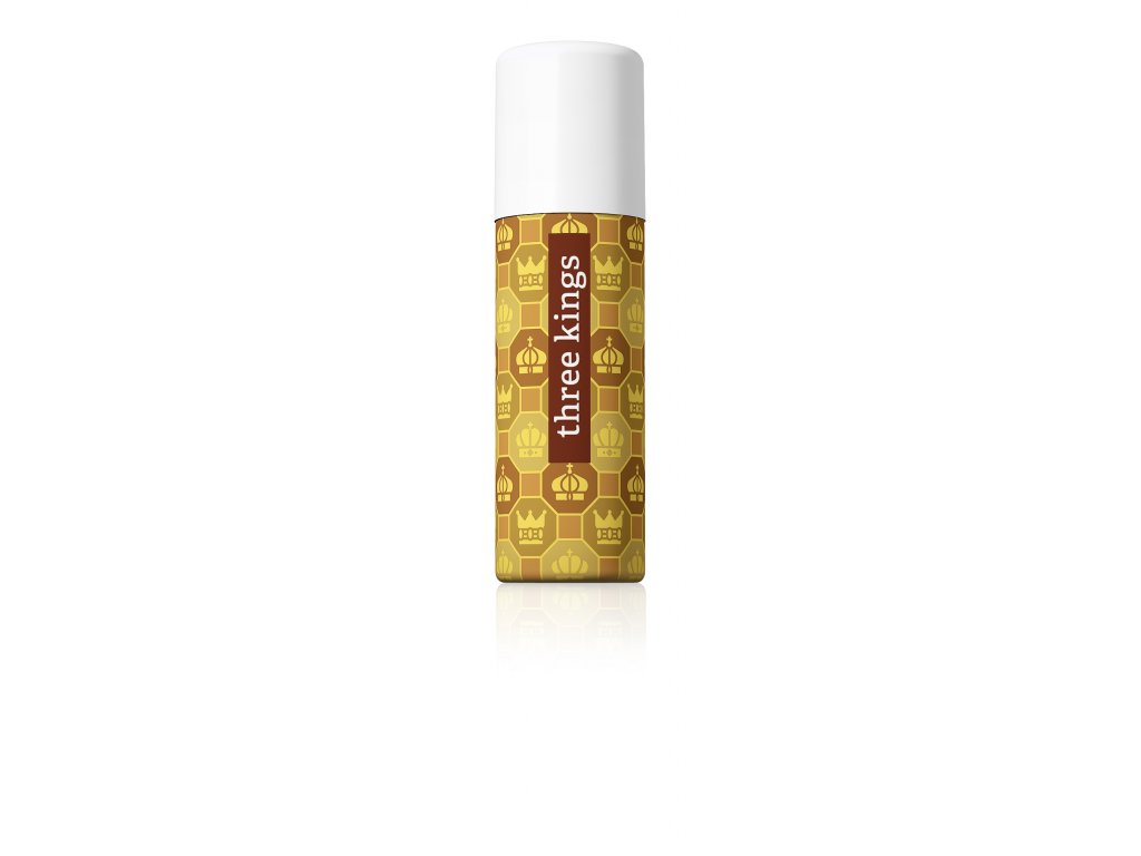 Tři králové podle proroctví přinesli novému králi dary nejcennější: zlato, kadidlo a myrhu. Proto produkt obsahuje jedinečnou kombinaci esencí vzácného kadidla, myrhy, hřebíčku, skořice, eukalyptu, rozmarýnu a citronu – to vše obohacené o částice pravého zlata.