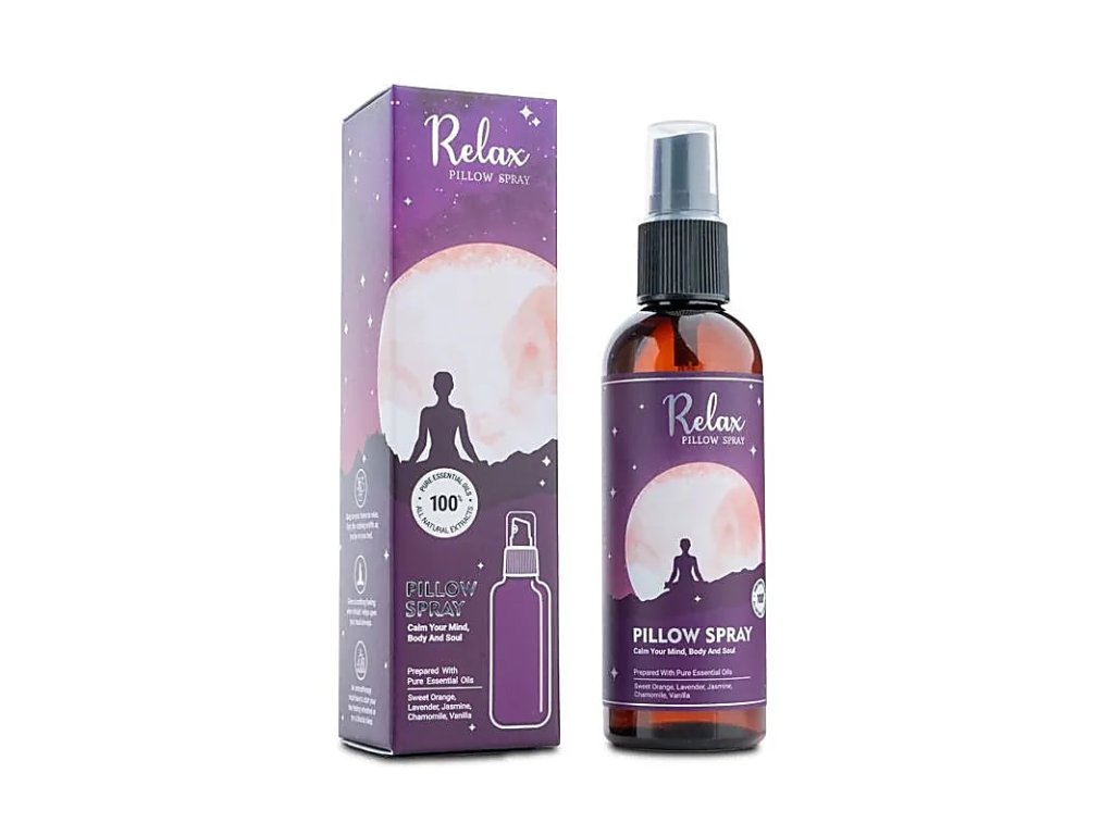 Sprej Relax kombinuje konejšivé a zklidňující vůně a vytváří klidnou a pokojnou atmosféru. Obsahuje pečlivě vybrané vůně, vyrobené ze 100% esenciálních olejů pro zlepšení vašeho spánku. Relaxujte a probuďte se svěží.