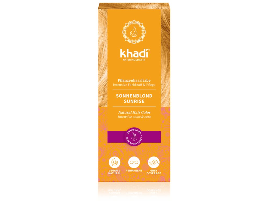 Vneste slunce do svých vlasů – Khadi rostlinná barva na vlasy Sluneční blond barví vlasy výraznou, hřejivou sluneční blond. Výsledný tón závisí na výchozí barvě Vašich vlasů, jakož i na zvolené době působení. Světlým vlasům dává výraznou letní sluneční blond až medově blond s vysokým leskem. Rostlinné blond barvy nenarušují vlasovou strukturu a proto nemají zesvětlující účinek. U tmavých vlasů tak nedochází k jejich zesvětlení, získávají zlaté až jahodově zlaté odlesky a celkově krásný lesk. Spolu s barvou získávají vlasy zároveň výrazný lesk, bohatý objem a intenzivní péči v jednom kroku!