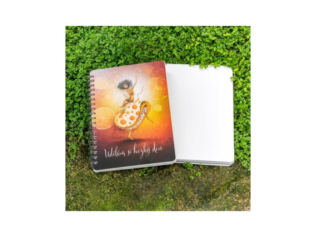 Skicáček velikosti B6 (12,5 x 18 cm) s 50 listy hezkého lehce nažloutlého papíru, po kterém tužka 3B příjemně drandí. Přední obálka s obrázkem je ze silného (350 g) křídového papíru. Zadní obálka je ze silného šedého kartonu bez potisku. Vazba je kroužková - drátěná.