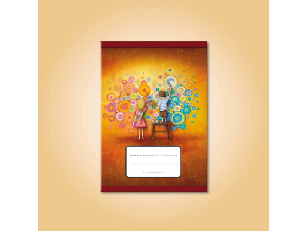 Školní sešit, s autorskou ilustrací "Tvořivost" na přední obálce a motivačním textem na zadní obálce.