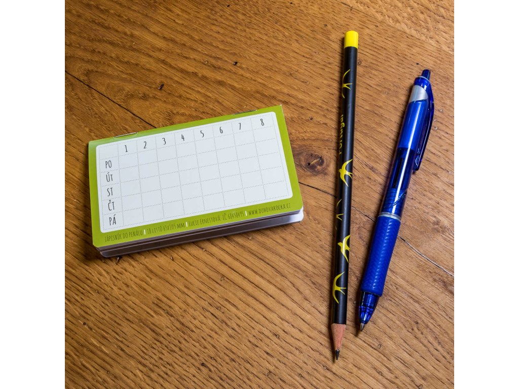 Máte doma školáky zapomnětlivce, kteří si nepamatují domácí úkoly a ztrácejí sešitky v hlubinách aktovky? Sežeňte pro ně zápisník do penálu, ke kterému mohou mít díky obrázku na obálce i hezký vztah. Samozřejmě se hodí i do každé kabelky nebo do auta. Poslouží i jako slovníček.
