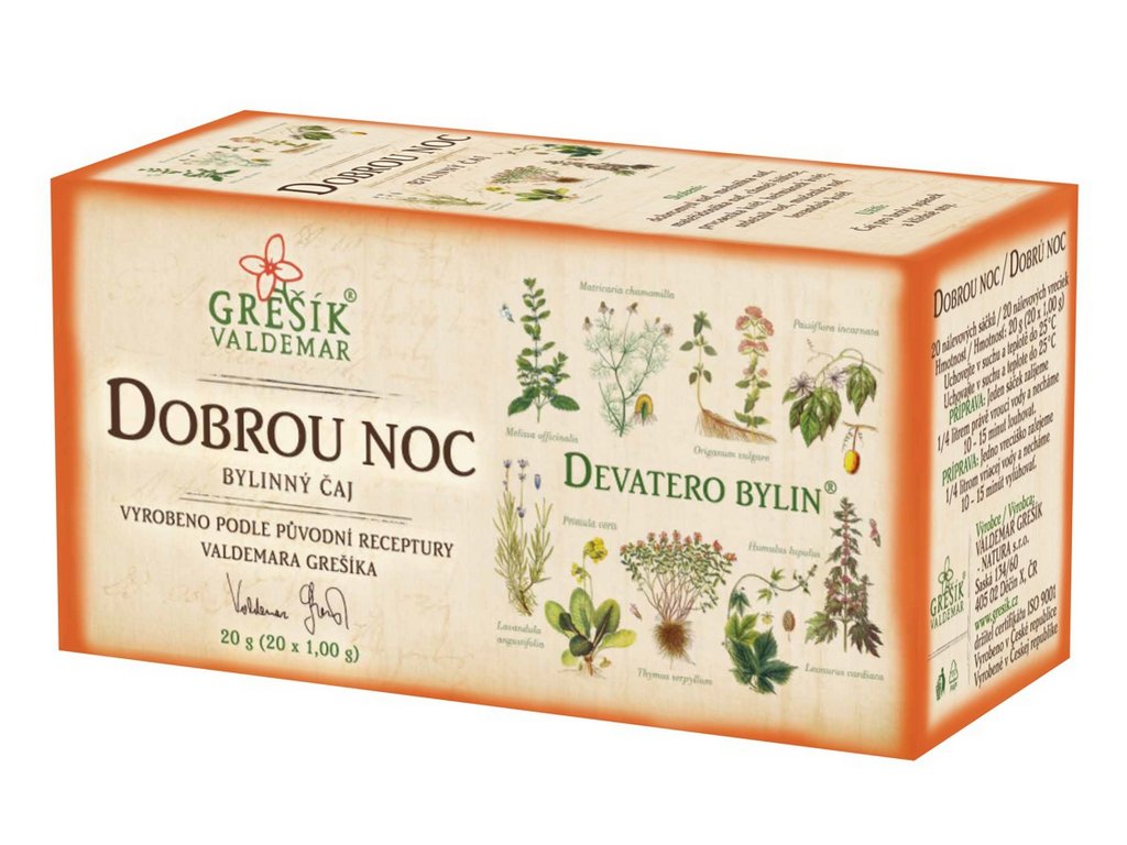 Složení: dobromysl nať, meduňka nať, mateřídouška nať, chmel šištice, prvosenka květ, heřmánek květ, srdečník nať, mučenka nať, levandule květ