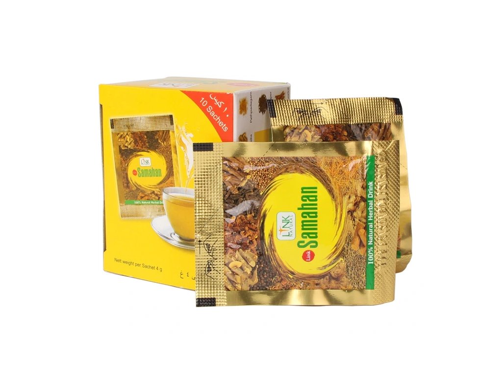 Horký nápoj Samahan je směsí 14 bylin a koření, které tvoří jedinečný mix používaný především při chřipce či nachlazení. Jeho složení podporuje normální funkci dýchacího systému, obranyschopnost a celkovou odolnost a vitalitu organizmu. Rozšiřuje také cévy, díky čemuž prohřívá celé tělo a navrací vitalitu. Horký nápoj také pomáhá tělu doplnit potřebné tekutiny.