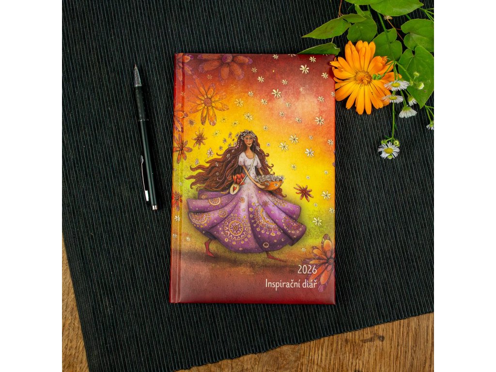 Diář má krásně měkké molitanem vypolstrované desky. Formátem zapadne přesně do ženské ruky. Vnitřní papír Munken je kvalitní, tenký, ale pevný. Díky tomu je diář se 152 stranami lehký. V diáři je záložková stužka v barvě designu. Vnitřní stránky jsou u všech šesti druhů našich diářů stejné. Na předsádkách jsou obrázky k dokreslení, které si během roku můžeme relaxačně dotvářet. Na vnitřní zadní straně obálky je vlepená praktická kapsa na papírové vizitky, samolepky a jiné poznámky. V úvodu najdete přehledné celoroční kalendárium, týdenní rozvrhy pravidelných aktivit pro sebe nebo své děti a návrh nejrůznějších předsevzetí. Na konci diáře najdete několik volných stránek pro vaše poznámky a přehledné celoroční kalendárium na rok 2027. Poslední stránka diáře je věnovaná tématu cykličnosti žen a může vám poskytnout inspiraci pro pochopení náladových proměn žen během měsíčního cyklu.