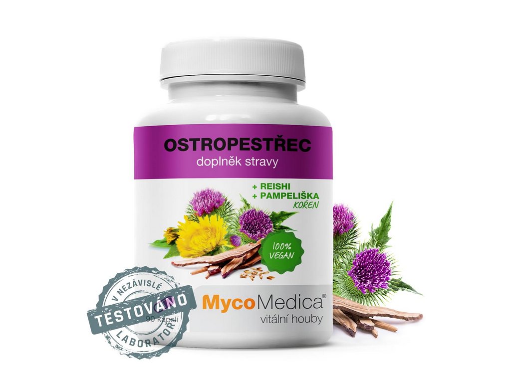 Účinky ostropestřce synergicky zvyšuje přidaný extrakt z kořene pampelišky a vitální houby Reishi. Pampeliška působí příznivě na činnost jater a žlučníku - zlepšuje produkci žaludečních šťáv a pročišťuje žaludek. Reishi má silné vitalizující účinky, aktivizuje imunitní reakce organismu, přispívá k udržení normální funkce oběhového systému a k udržení normální hladiny cholesterolu.