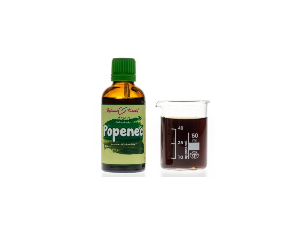 Složení tinktury: velejemný melasový ethanol 40 %, léčivá rostlina popenec břečťanovitý.