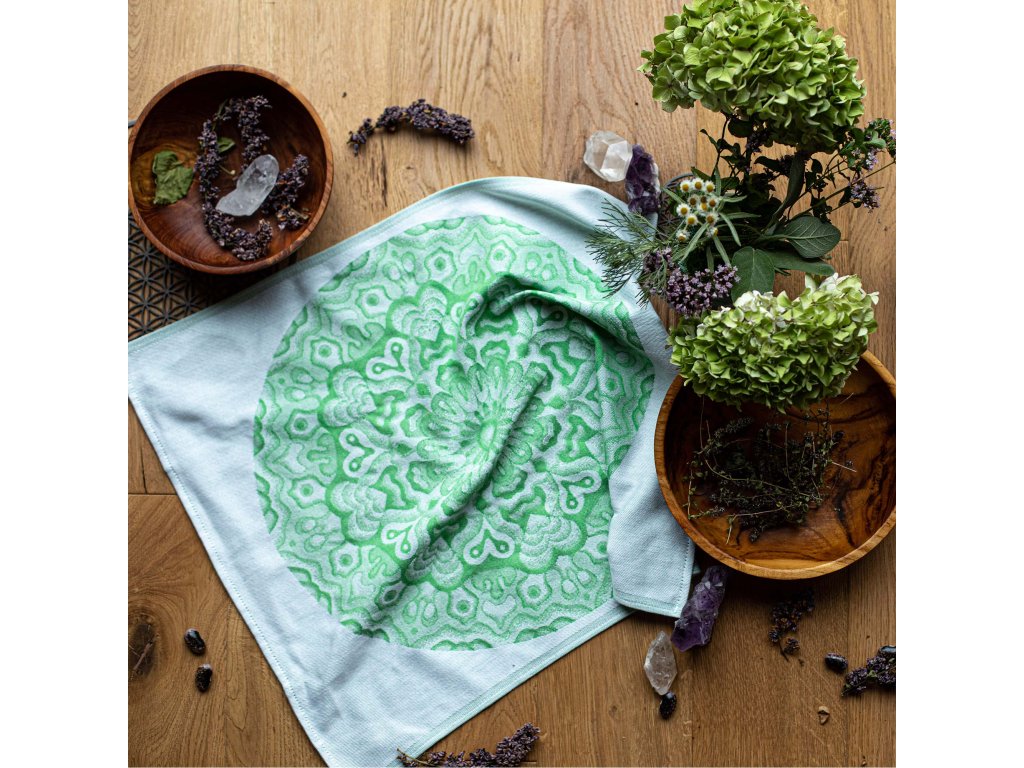 Utěrka mandala zelená – Srdeční čakra