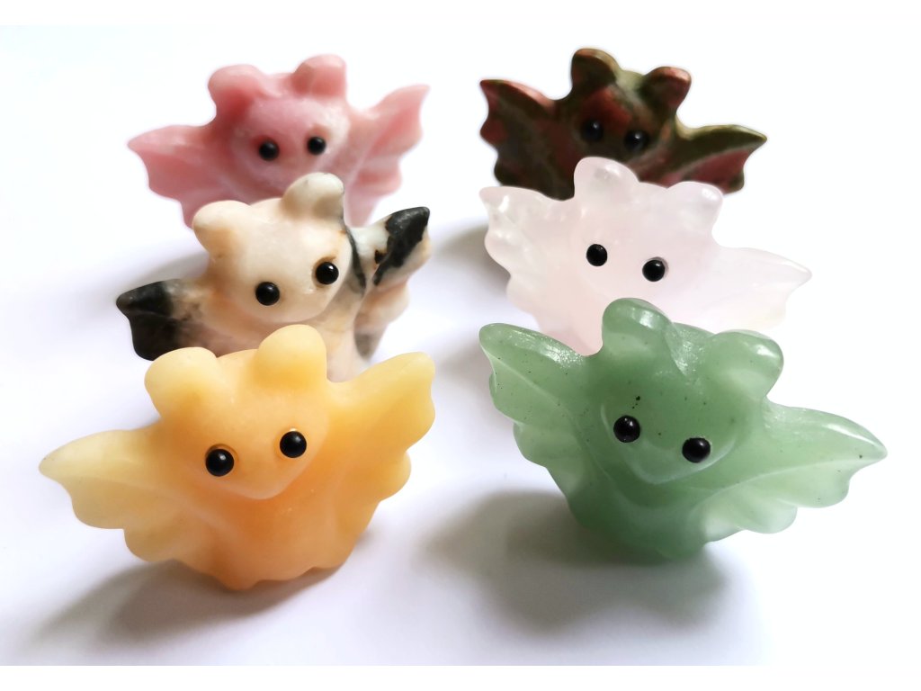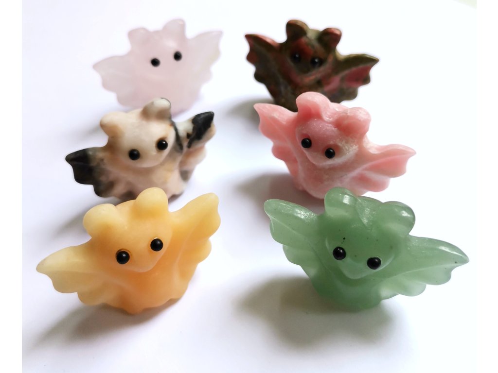 Každý kousek je originál – liší se barvou i kresbou materiálu, takže žádný není úplně stejný. Některé připomínají barevné minerály, jiné mají jemný, průsvitný vzhled. To dělá z každého netopýrka malého jedinečného kamaráda, který si snadno získá tvé srdce.
