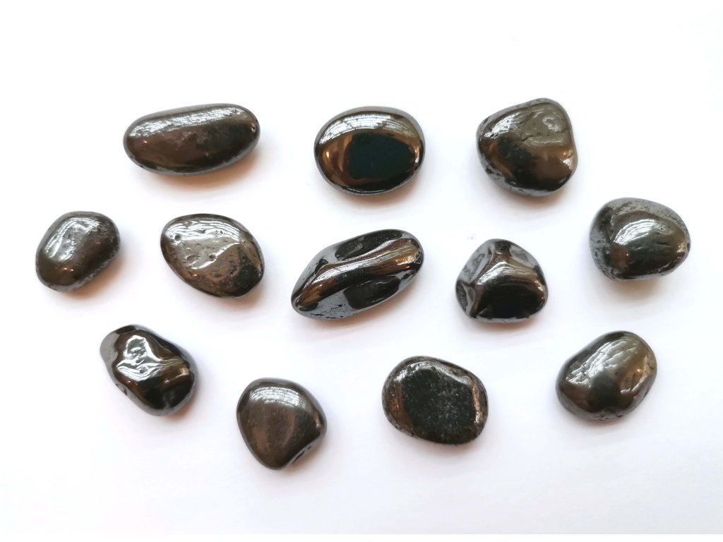 Hematit je kovově lesklý minerál s temně stříbrnou až černou barvou, známý svými silně uzemňujícími a ochrannými vlastnostmi. Už od starověku byl považován za kámen odvahy a vitality – využívali ho válečníci pro dodání síly a odhodlání. Dnes se hematit cení především pro svou schopnost harmonizovat tělo i mysl a vracet nás do vnitřní rovnováhy.