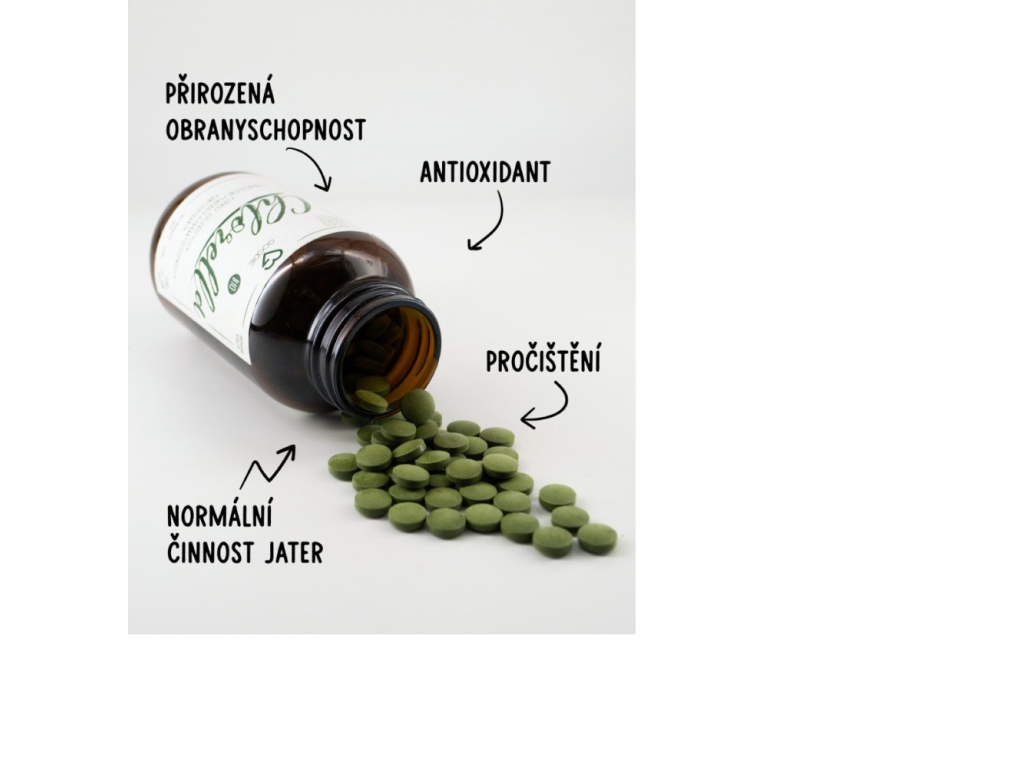 | Složení: | sladkovodní řasa bohatá na biologicky aktivní látky a chlorofy |