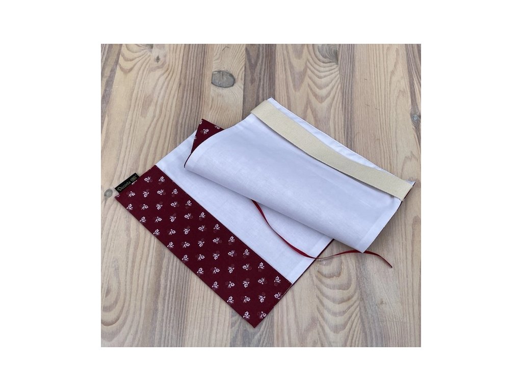 Textilní obal na knihu ruční výroby. Obal na knihu je ušitý z vysoce kvalitní bavlny. Jedinečný a originální vzhled obalu na knihu je zaručen pečlivým výběrem lícové a rubové látky. Samozřejmostí je všitá záložka.