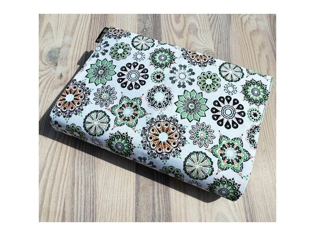 Textilní obal na knihu ruční výroby. Obal na knihu je ušitý z vysoce kvalitní bavlny. Jedinečný a originální vzhled obalu na knihu je zaručen pečlivým výběrem lícové a rubové látky. Samozřejmostí je všitá záložka.