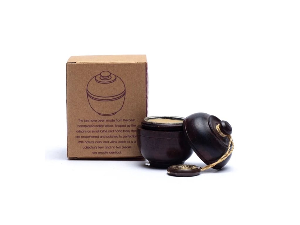 Dóza je vyrobena z nejlepší ručně sbírané kůry indického růžového dřeva. S přírodními barvami a žilkováním je každá dóza sběratelským kouskem a žádné dva kusy nejsou přesně totožné.