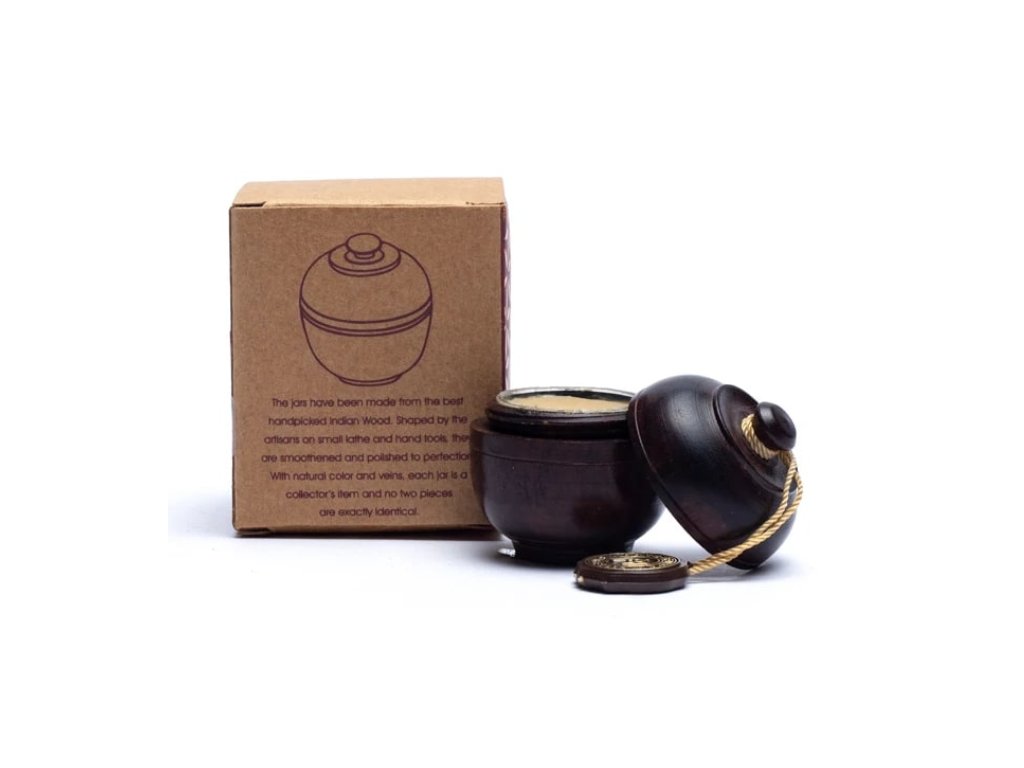 Dóza je vyrobena z nejlepší ručně sbírané kůry indického růžového dřeva. S přírodními barvami a žilkováním je každá dóza sběratelským kouskem a žádné dva kusy nejsou přesně totožné.