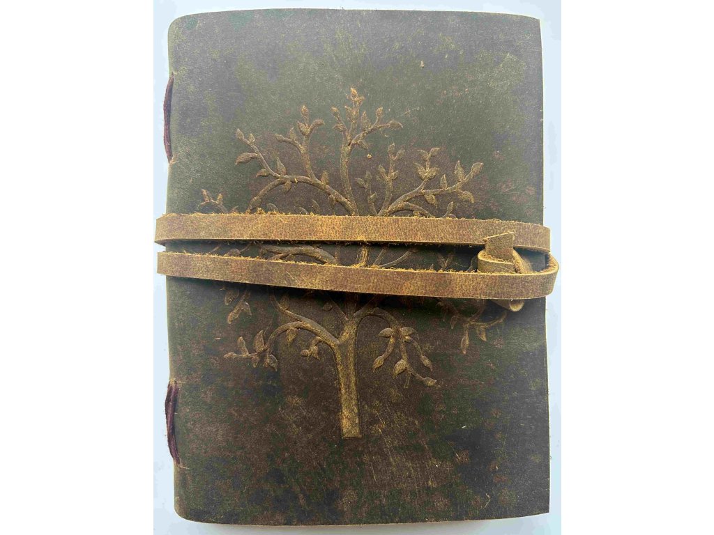 Kožený deník hnědý - Strom (střední M, čistý papír)