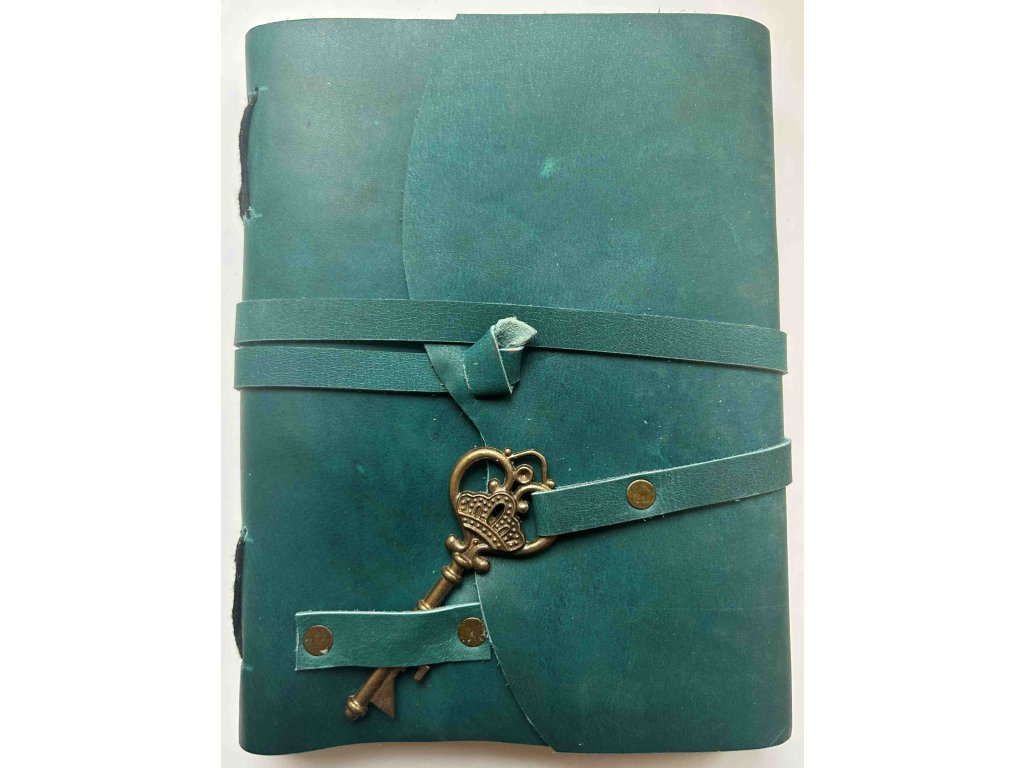 Kožený deník modrý - Klíč (střední M, čistý papír)