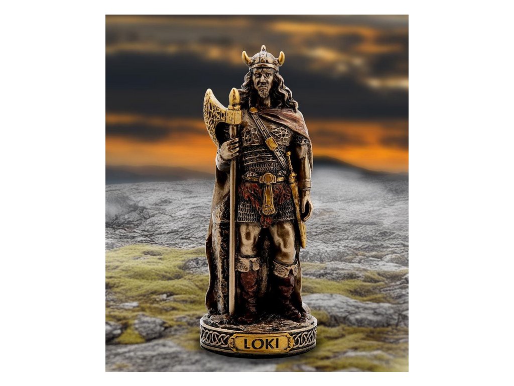 Tato figurka Lokiho, boha podvodů, je nádhernou reprezentací tohoto engimatického severského božstva vládnoucího nad neplechou a chaosem. Loki, oslavovaný v mýtech jako bůh, který balancuje na tenké linii mezi dobrem a zlem, je zosobněním nepředvídatelnosti.