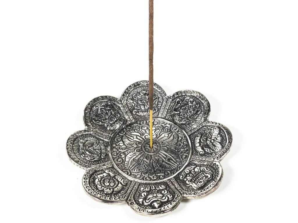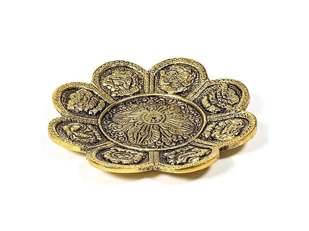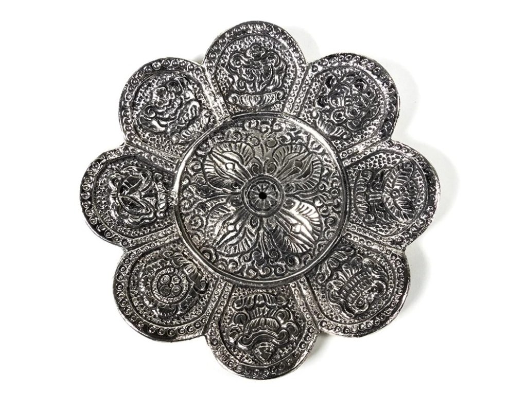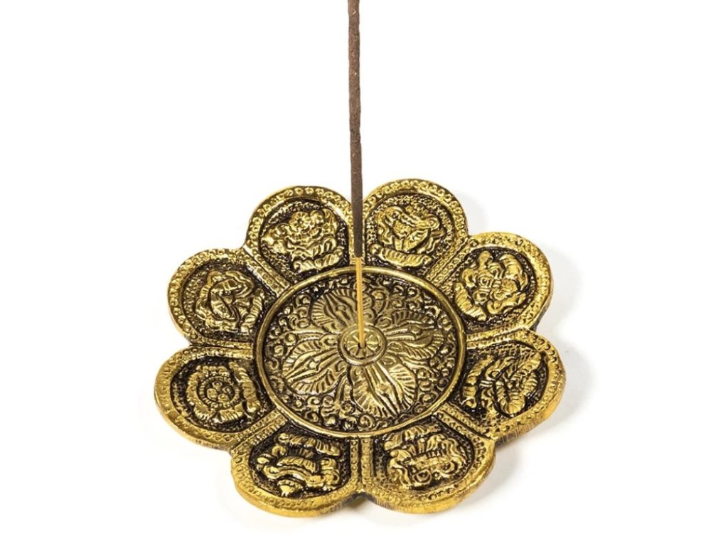 Kovový stojánek na vonné tyčinky - 8 buddhistických symbolů