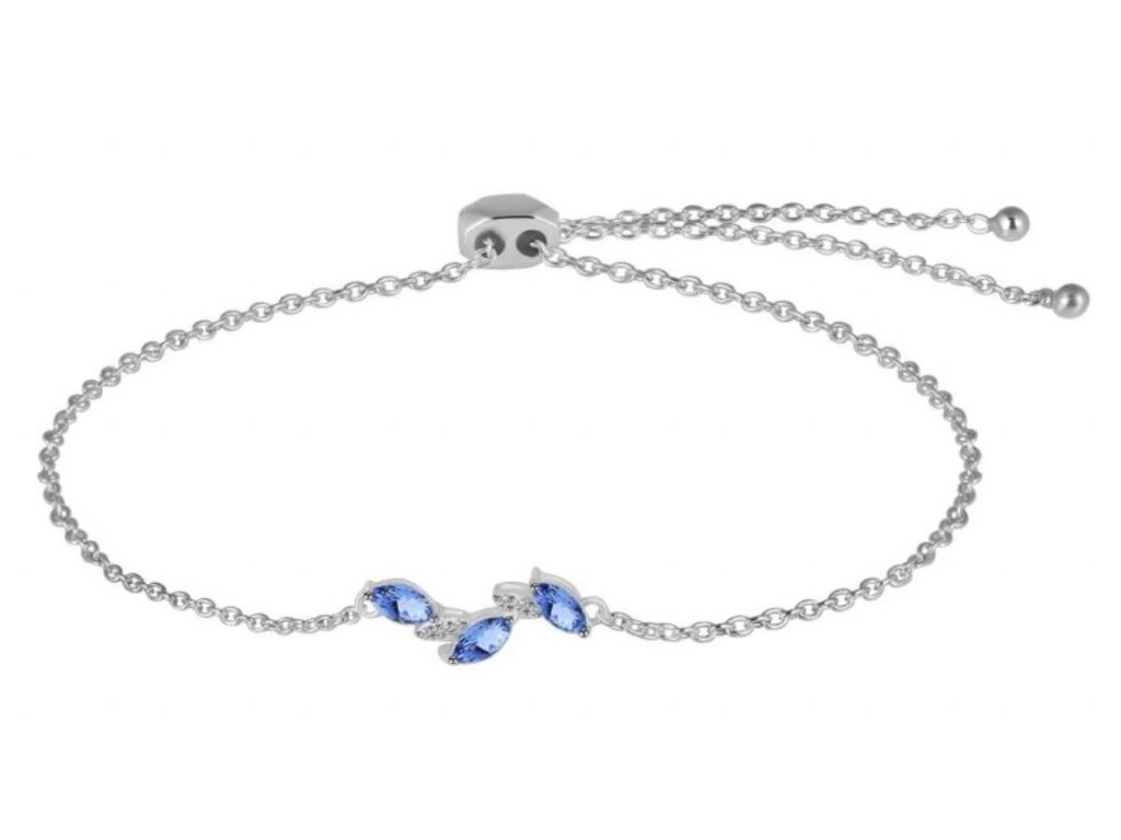Luxusní náramek zdobí přírodní kameny modrého tanzanitu a bílé topazy. Náramek má kvalitní posuvné zapínání a přizpůsobí se jakémukoliv zápěstí, je tedy ideální i jako dárek, u kterého si nemusíte lámat hlavu se správnou velikostí.
