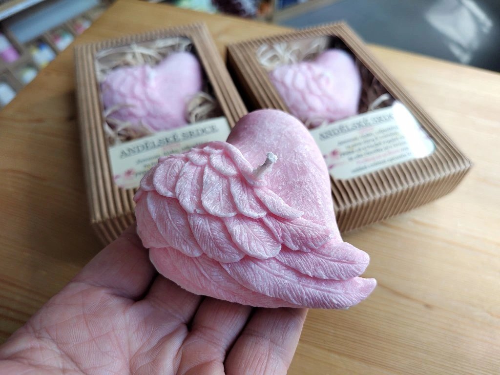Lumio svíčka Andělské srdce růžové v krabičce