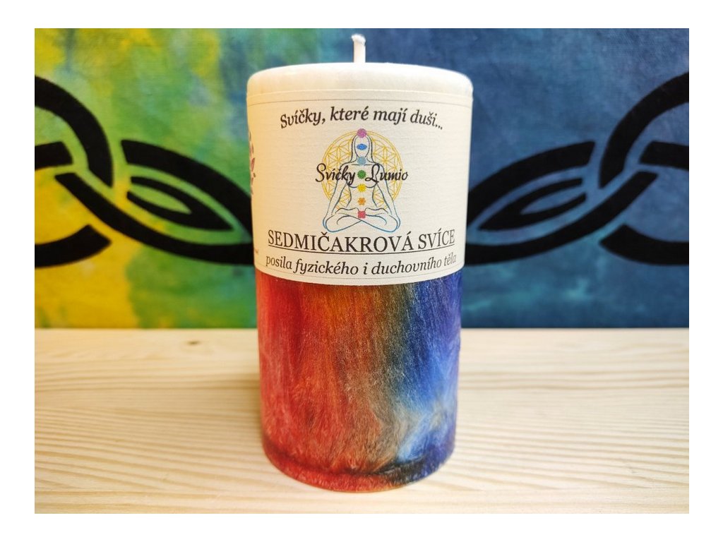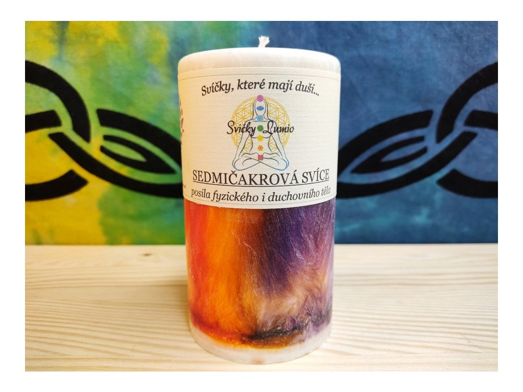 Sedmičakrová svíce působí svým vlivem na prostor, kde je pálena, navrací zpět ztracenou energii a posiluje auru.