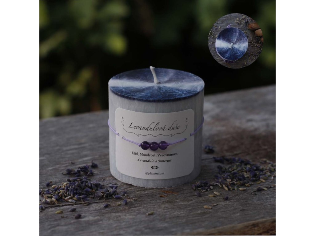 Levandule je velmi silná, hluboká a moudrá bylina. Otevírá bránu do komnat našeho nitra, kde sídlí vnitřní klid. Pomocí svíčky se můžeme napojit na svou duši a otevřít své vědomí. Její schopností je uvolnit, ulevit a vyrovnat naše tělo a mysl. Nechte se ponořit do duše tajemné Levandule a načerpejte skrze plamen její harmonizující sílu.