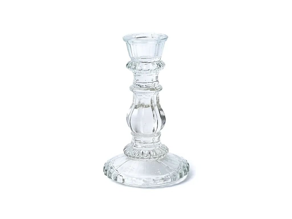 Sklěnený svícen na dlouhou svíčku, vysoký