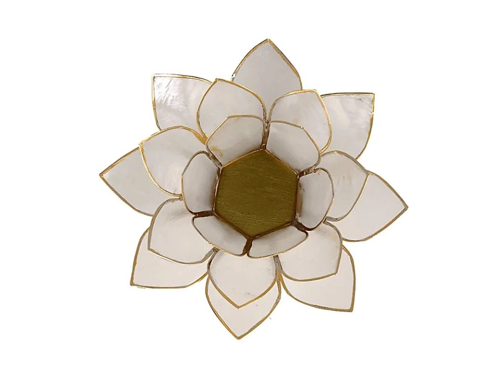 Svícen na čajovou svíčku je krásný designový doplněk, který udělá radost i jako originální dárek pro Vaše blízké. Svícen je ručně vyroben z tenkých perleťových plátků mušle Placuna placenta, které jsou barveny. Rozsvícením se lotosový květ nádherně rozzáří.