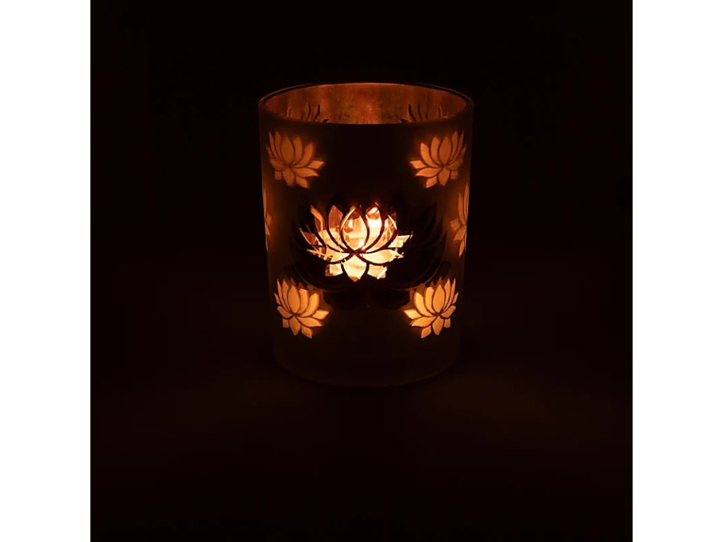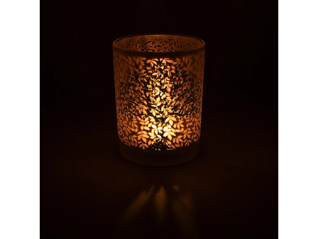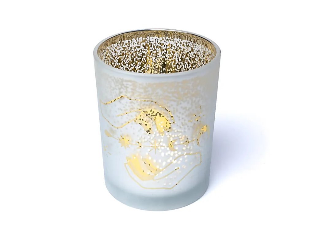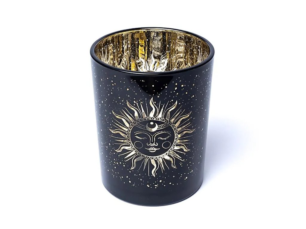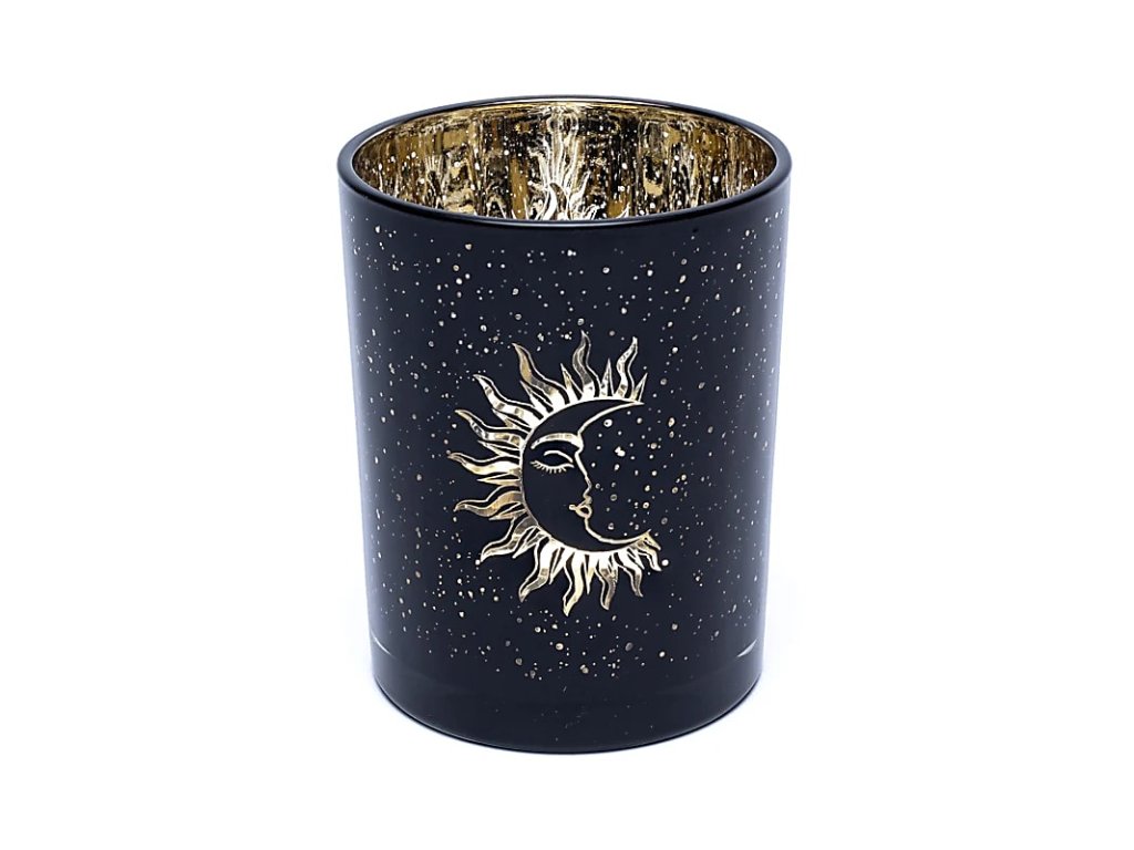 Skleněný svícen s kovovou vrstvou. Je zdoben mystickými symboly, které po zapálení svíčky ve tmě buď ustupují do pozadí a nechávají vyniknout do té doby skryté průsvitné doprovodné motivy, nebo prosvítají společně s nimi.