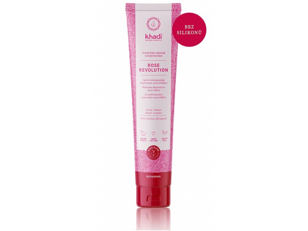 V kondicionéru Růže Revolution, stojícím na ajurvédě, spojuje Khadi sílu ajurvédy a nejnovější výzkumy v oblasti přírodní vlasové péče. Spolupůsobí v něm tak nově vyvinutý reparační komplex inulin-betain a Khadi elixír Růže Reparace, originální ajurvédský koncentrát, získaný podle prastarých tradic z ručně sbíraných indických pečujících rostlin, jako amla, brahmi, bhringaraj, ibišek či lékořice, jakož i z cenných růžových květů. Jeho intenzivně pečující vlastnosti stojí na ajurvédské filozofií, která říká, že zdravé vlasy souvisejí s rovnováhou vnitřní a vnější krásy.